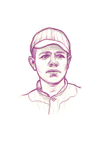 George Herman Ruth, depicted in his early incarnation as a star pitcher for the Red Sox. High quality digital print on four-ply paper. Limited edition of 5, signed and numbered. 5.82" x 4.13"